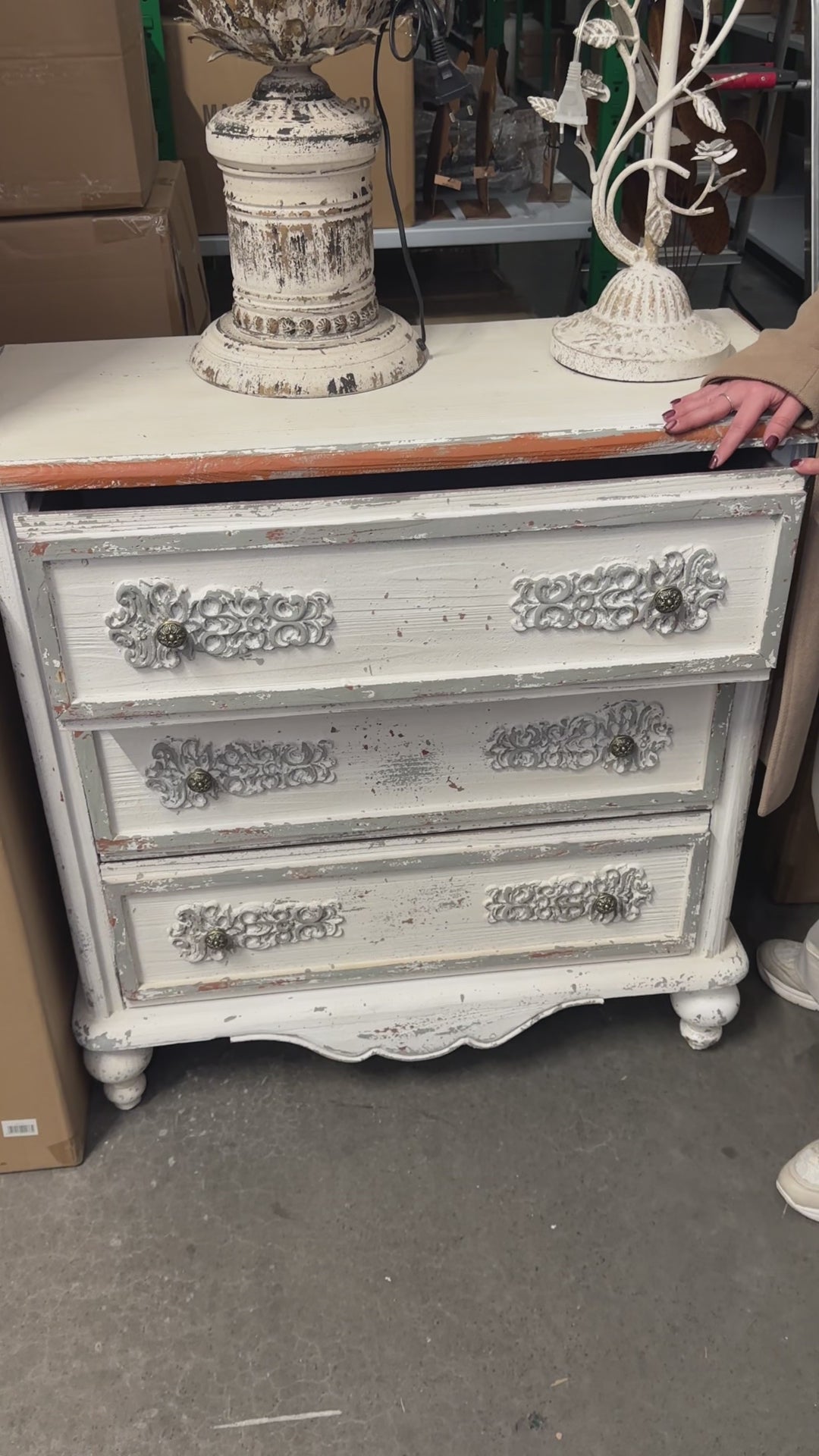 Credenza in Legno Naturale 195x45x90H con 3 Cassetti, 2 Ante e Decoro ad Intarsio