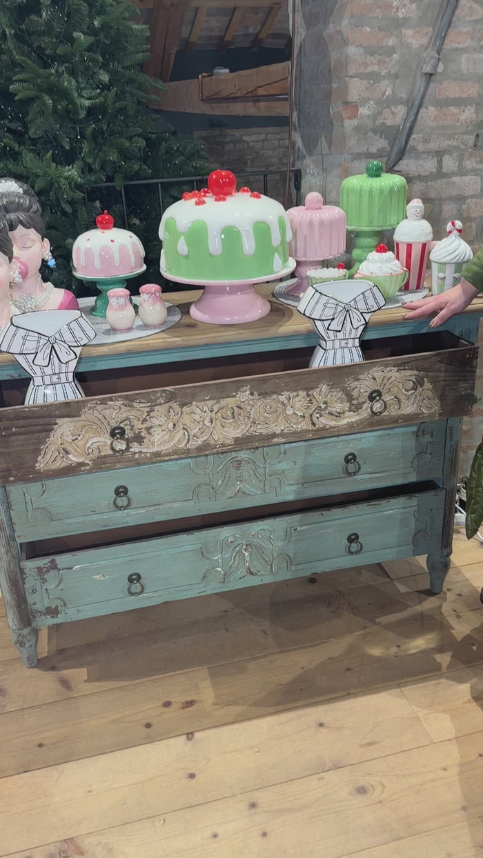 Mobile cassettiera shabby chic in legno grigio, bianco e marrone chiaro – 116x40xH82 cm