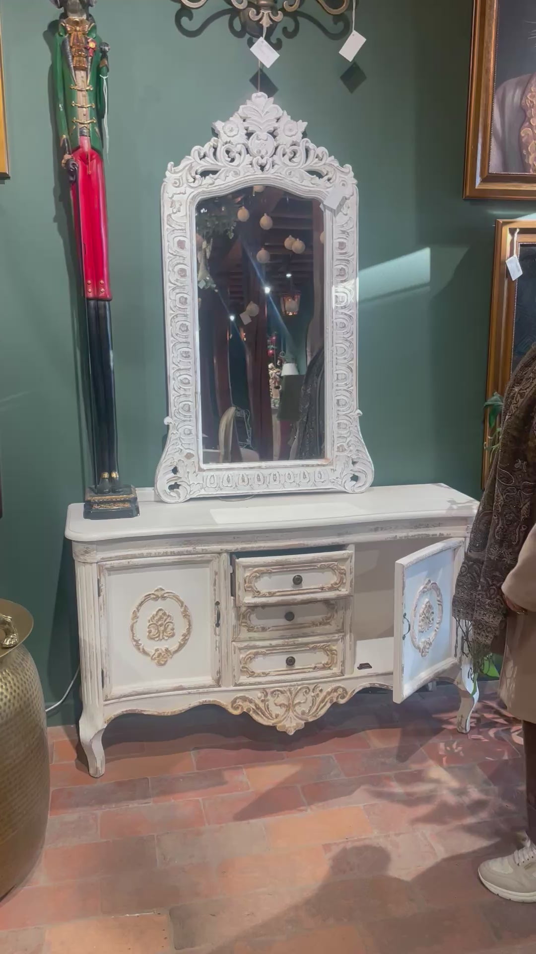 Il mobile è di colore bianco avorio con decori dorati. Il colore è la bellezza del mobile!