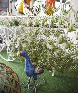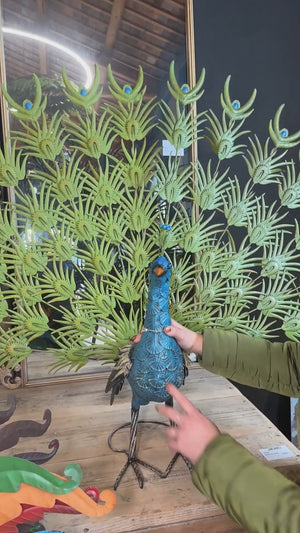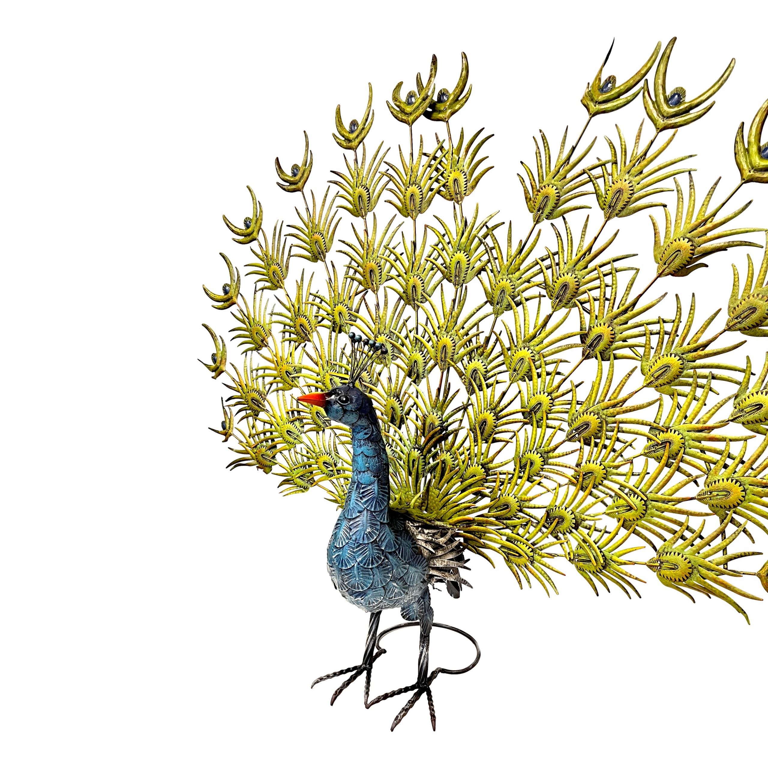 Elegante pavone in ferro colorato, perfetto per decorare giardino, veranda o balcone. Resistente, vivace e unico, aggiunge fascino e personalità agli esterni.