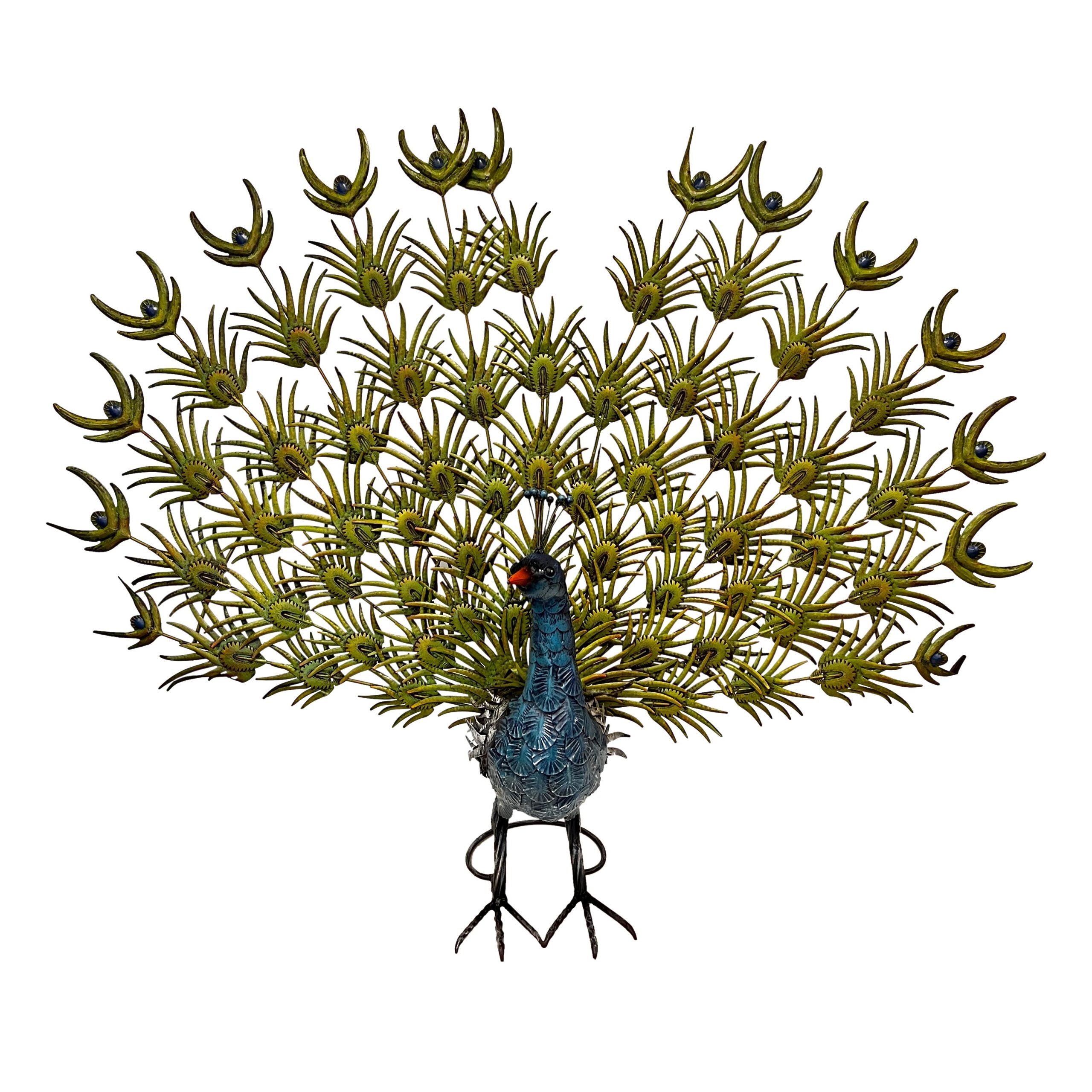 Pavone Elegante in Ferro Colorato per Decorare Esterni