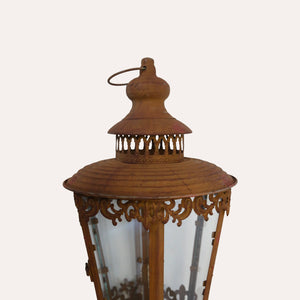 Dotata di un pratico gancetto superiore per appenderla e di un'apertura laterale per inserire un lumino, questa lanterna è un elemento decorativo versatile sia per interni che per esterni. Realizzata in ferro trattato per uso esterno, offre un aspetto vintage grazie alla finitura che imita l'arrugginito.