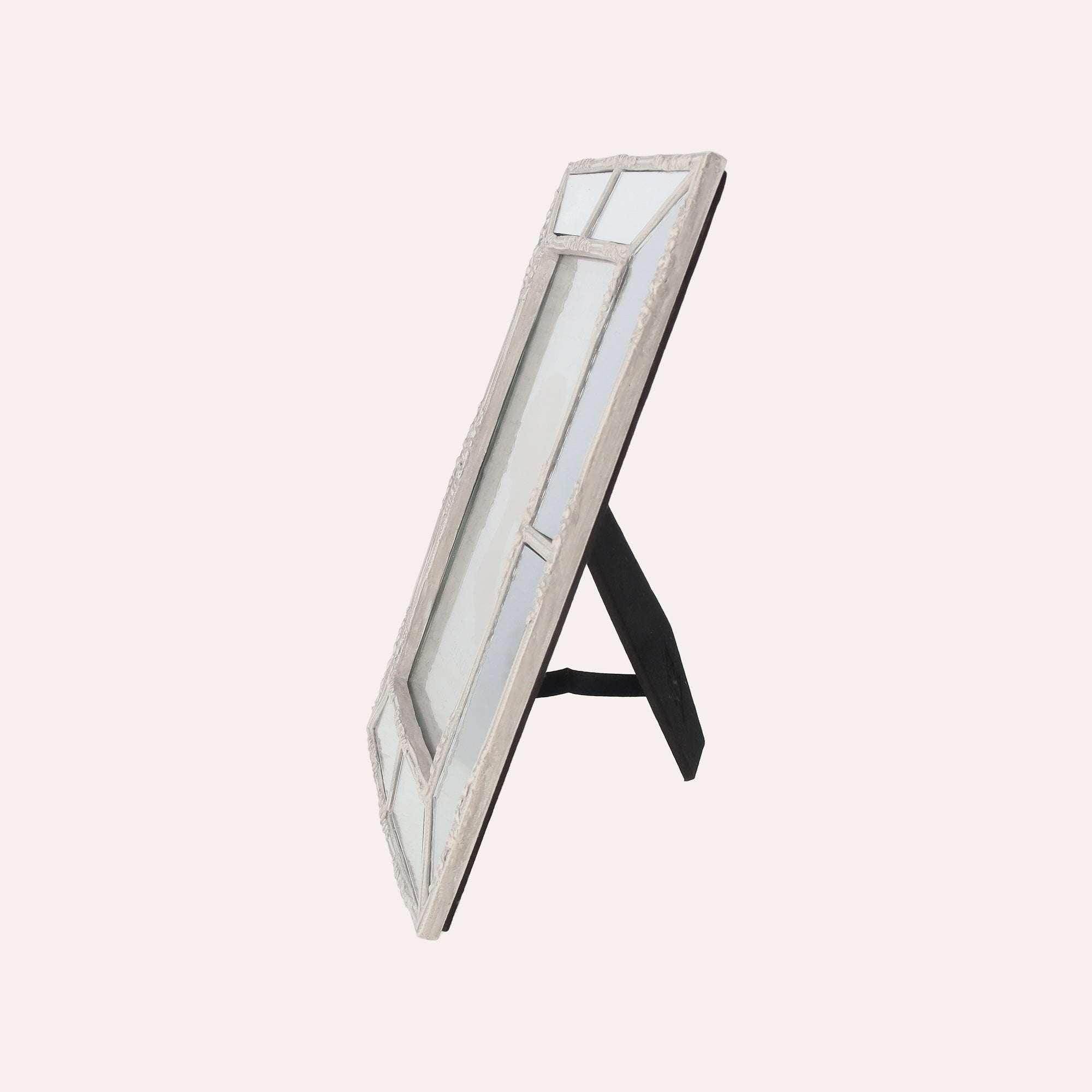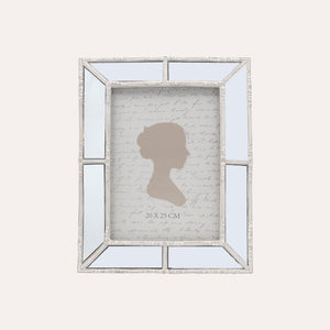 Porta Foto Grande Cornice Decorativa con Effetto Specchiato e Finitura Bianca (24x19 cm)