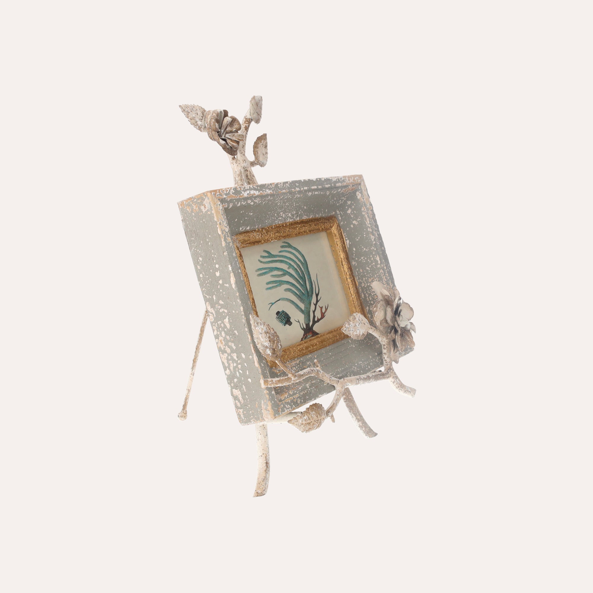 Questo raffinato portafoto in ferro color grigio con dettagli dorati è un pezzo unico che aggiunge eleganza agli ambienti interni. In stile anticato e ornato con elementi floreali, è ideale da appoggiare su mensole, mobili, e credenze. La struttura solleva il portafoto, creando un effetto elegante e curato. Perfetto per esporre le tue foto preferite con stile, questo porta ritratti si integra facilmente in arredi shabby chic. È un'originale idea regalo per un'amica o un parente amante dell'estetica vintage. Il prodotto arriva ben imballato, pronto per donare un tocco di classe ai tuoi spazi.