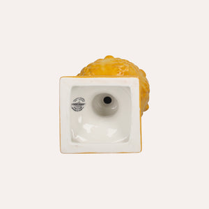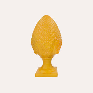 Raffinata pigna in ceramica di Bassano, simbolo di prosperità e buon auspicio. Realizzata in ceramica artigianale italiana, presenta una finitura lucida gialla che dona luce ed eleganza agli ambienti.