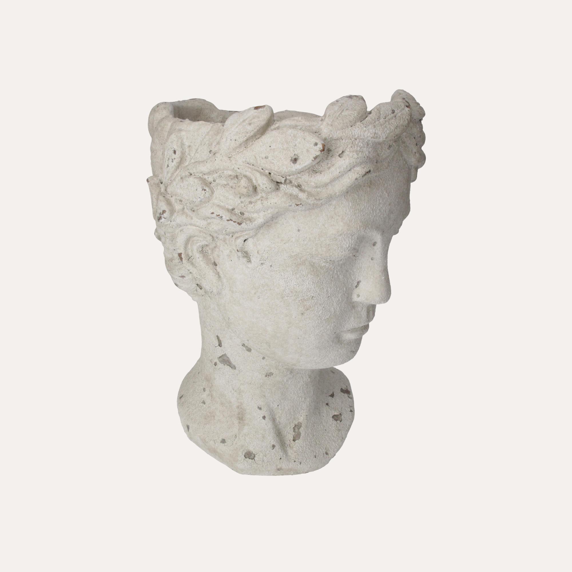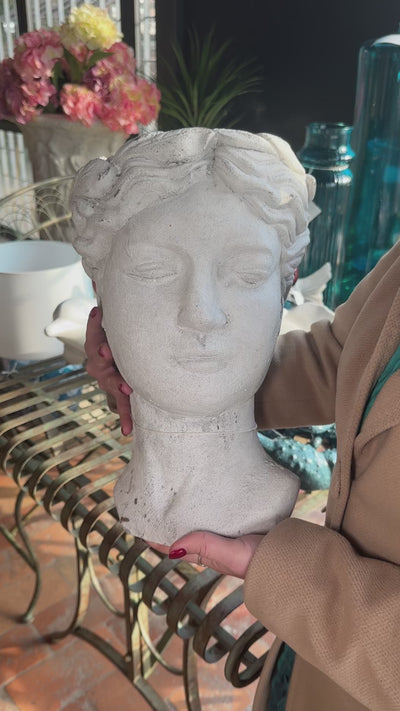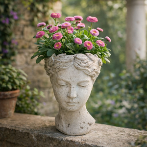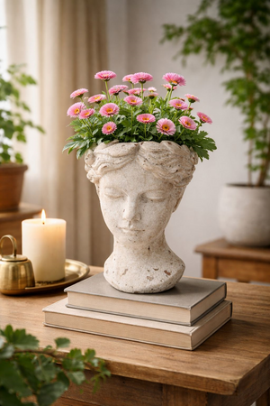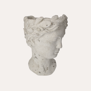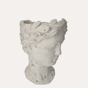 Elegante testa porta vaso in resina bianca, perfetta per esaltare piante e fiori con uno stile unico e contemporaneo.