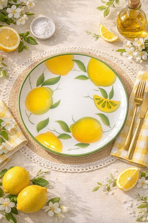 Elegante piatto piano decorato con vivaci limoni, perfetto per portare in tavola tutto il fascino e i colori della tradizione mediterranea.