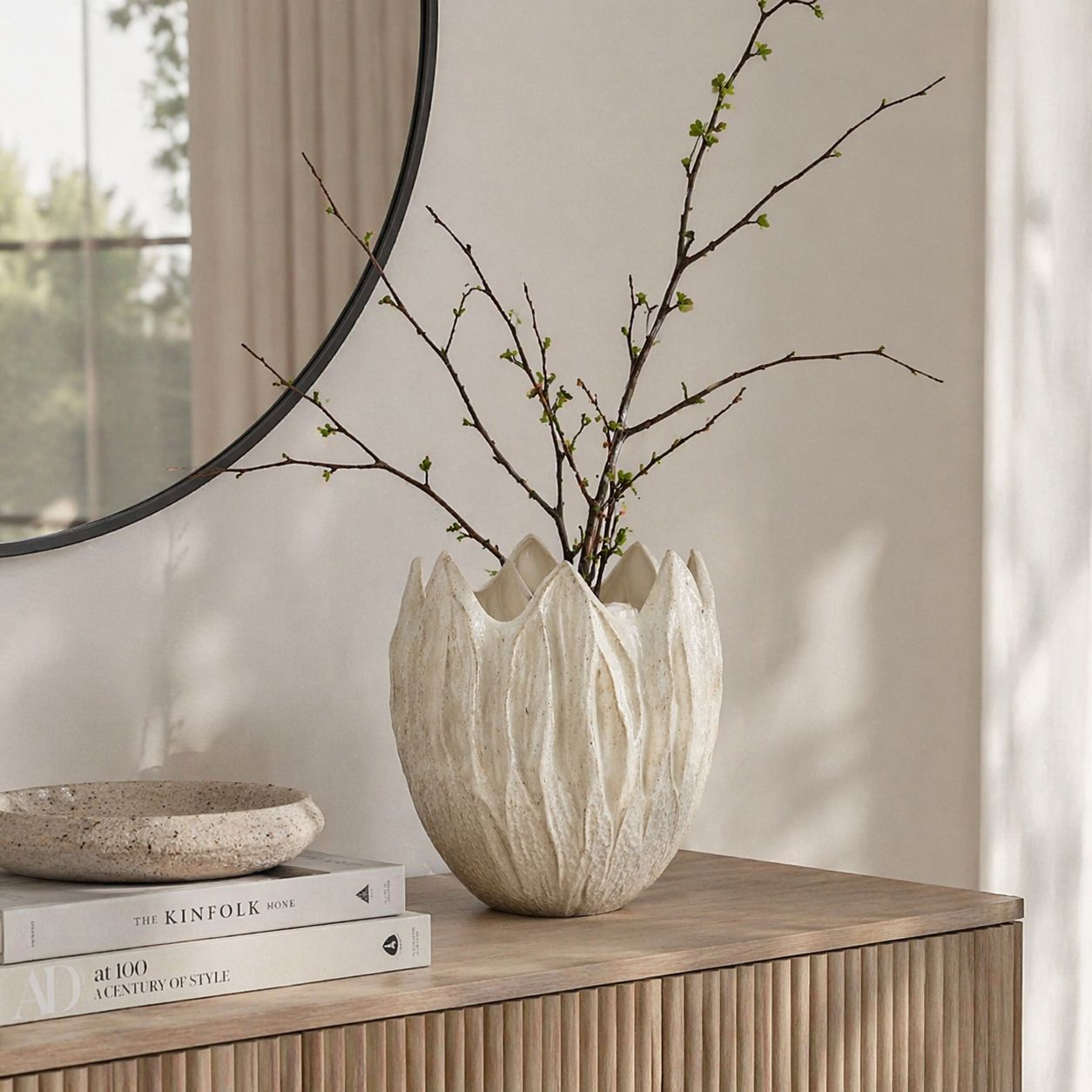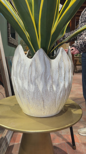 Portavaso con foglie in ceramica bianca H 40 D 36
