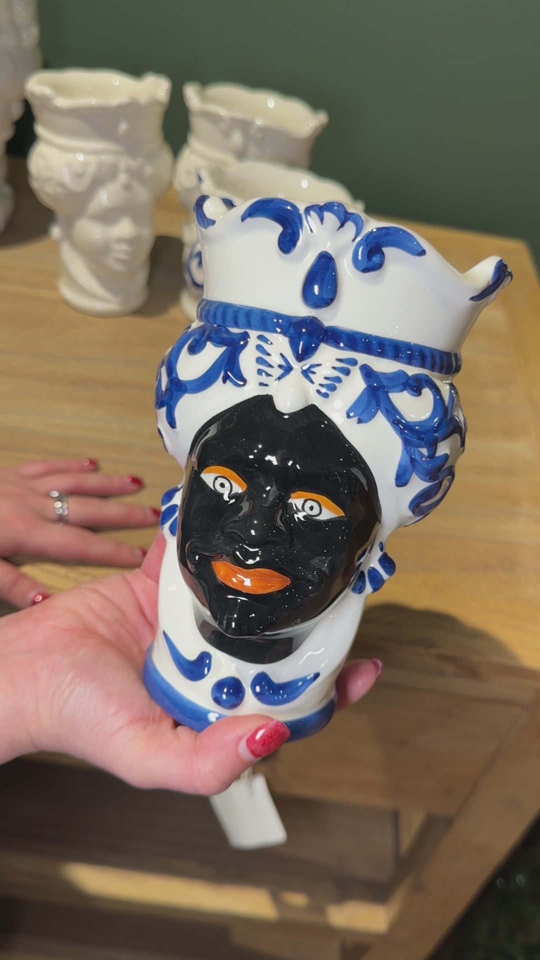 Moor's Head Man Vase in Decorated Ceramic - Handcrafted in Italy, 20 cm high