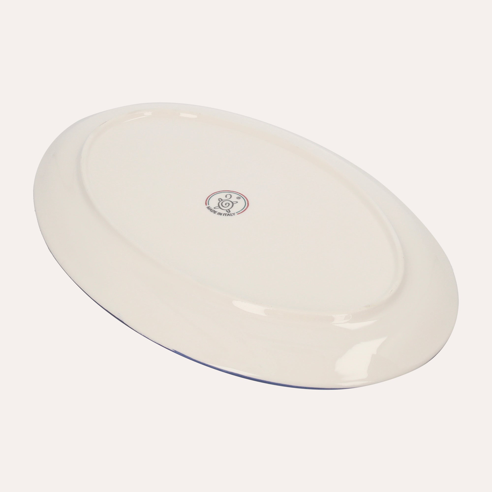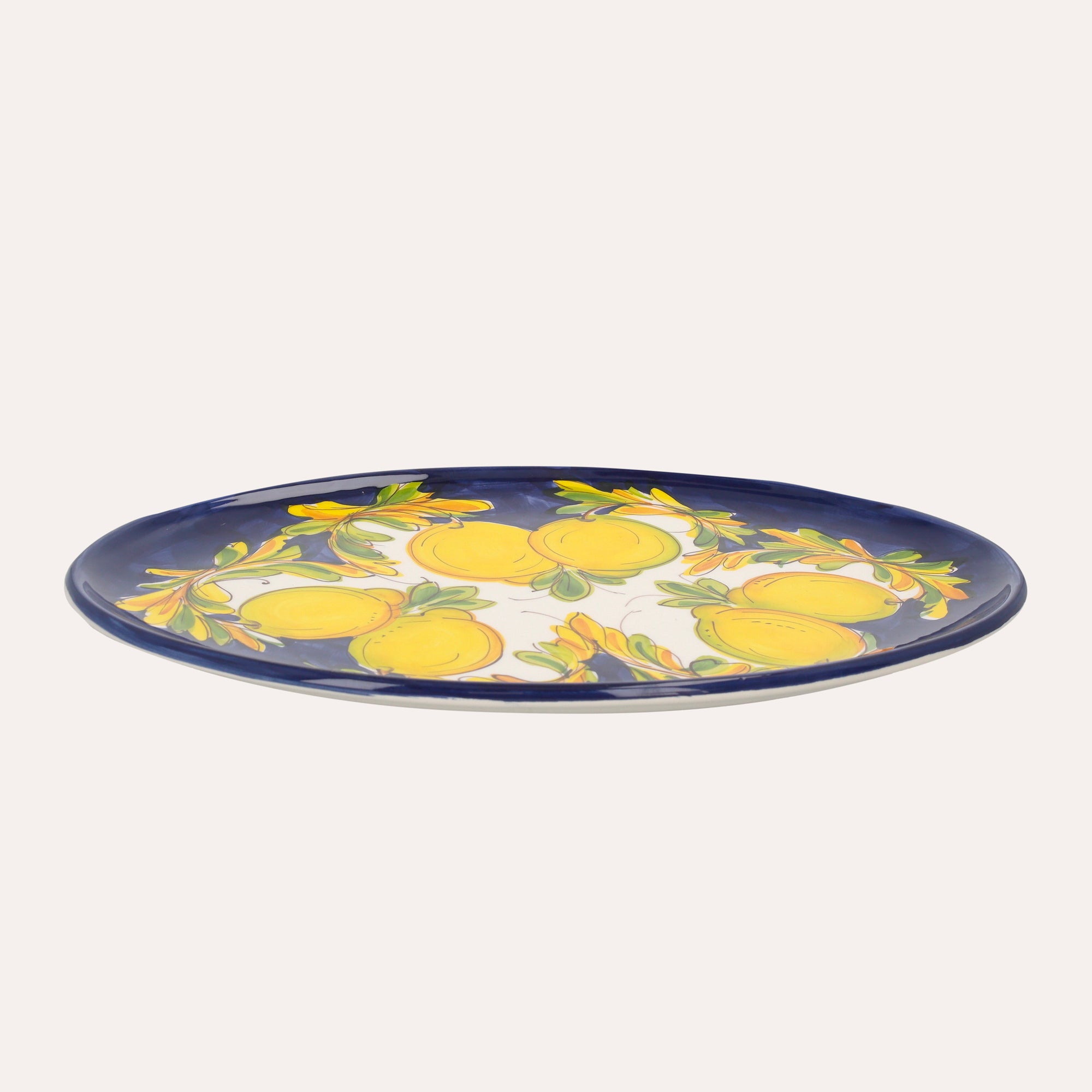 Crafted from high-quality ceramic, it features a decorative lemon motif, a symbol of vitality and Mediterranean flair, adding a bright and refined touch to the table. Its oval shape and artisanal craftsmanship make it a distinctive piece, perfect for both everyday use and special occasions.