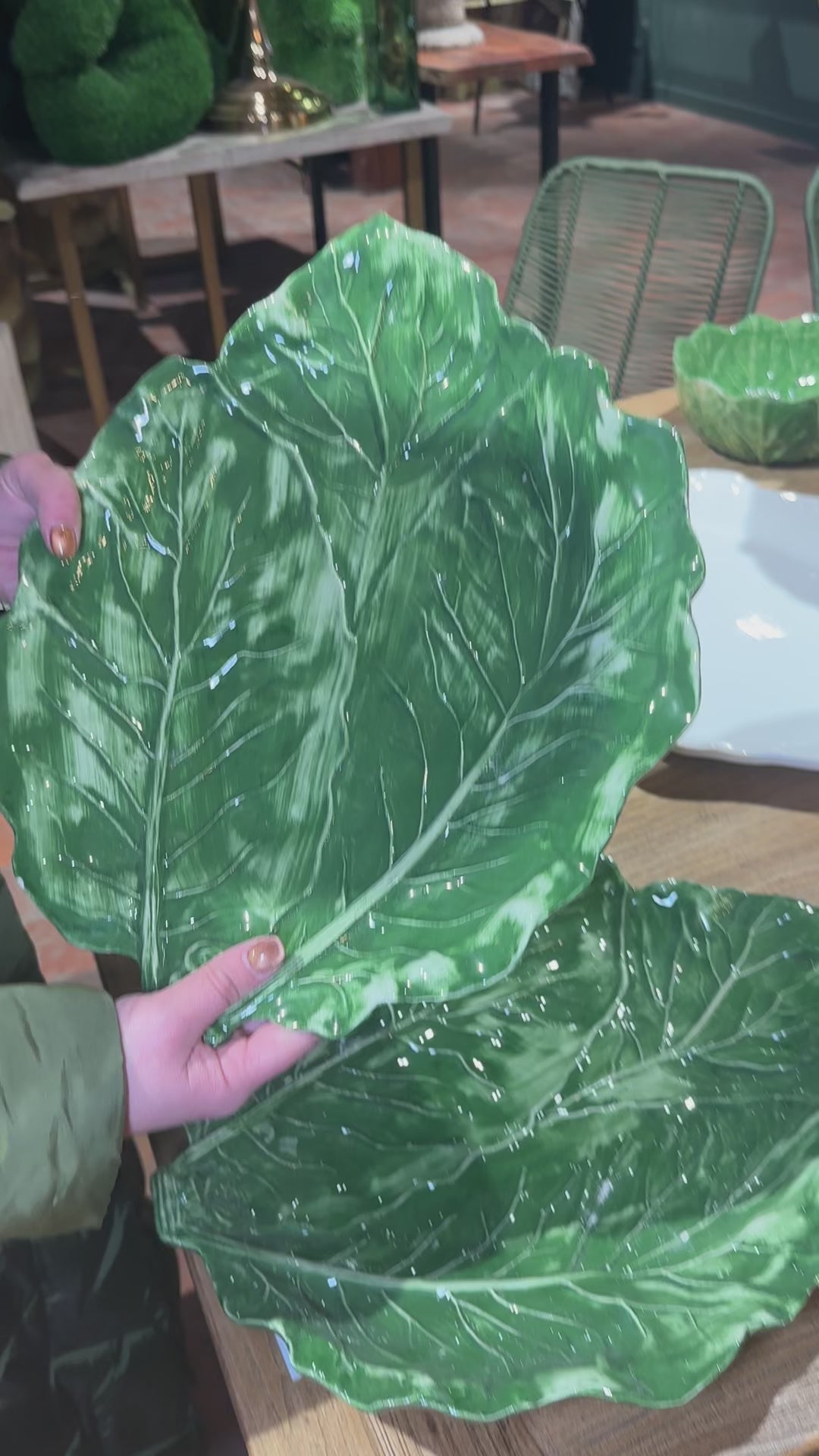 Set of 2 Green Ceramic Salad Bowls in the Shape of a Cabbage Leaf - Made in Italy