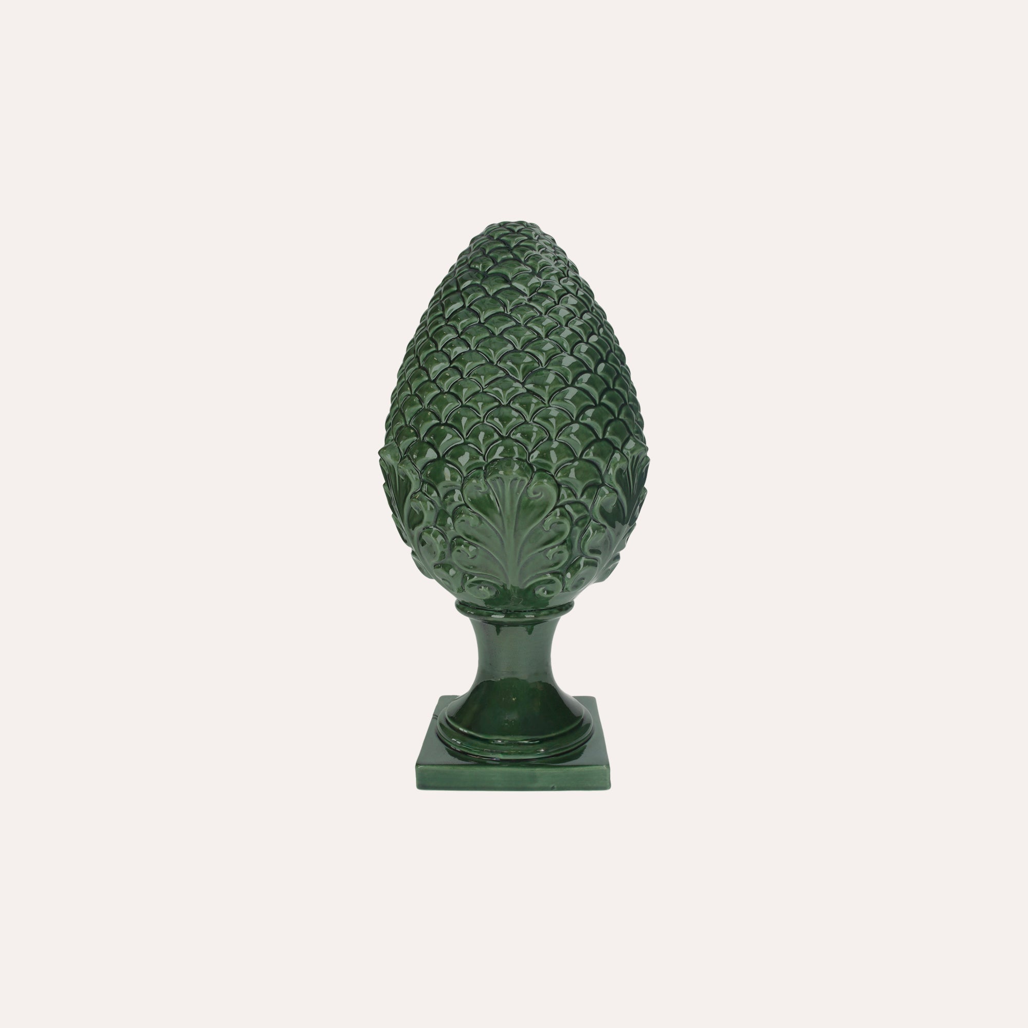 Small Green Ceramic Pine Cone Decoration, Handcrafted in Italy