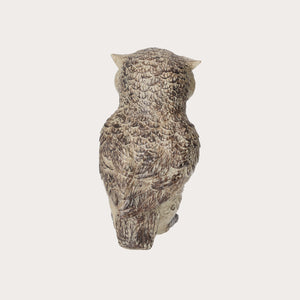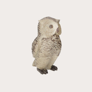 A lifelike and charming light brown resin owl figurine, ideal as an indoor or outdoor ornament. Dimensions: height 30 cm, width 17 cm, depth 17 cm.