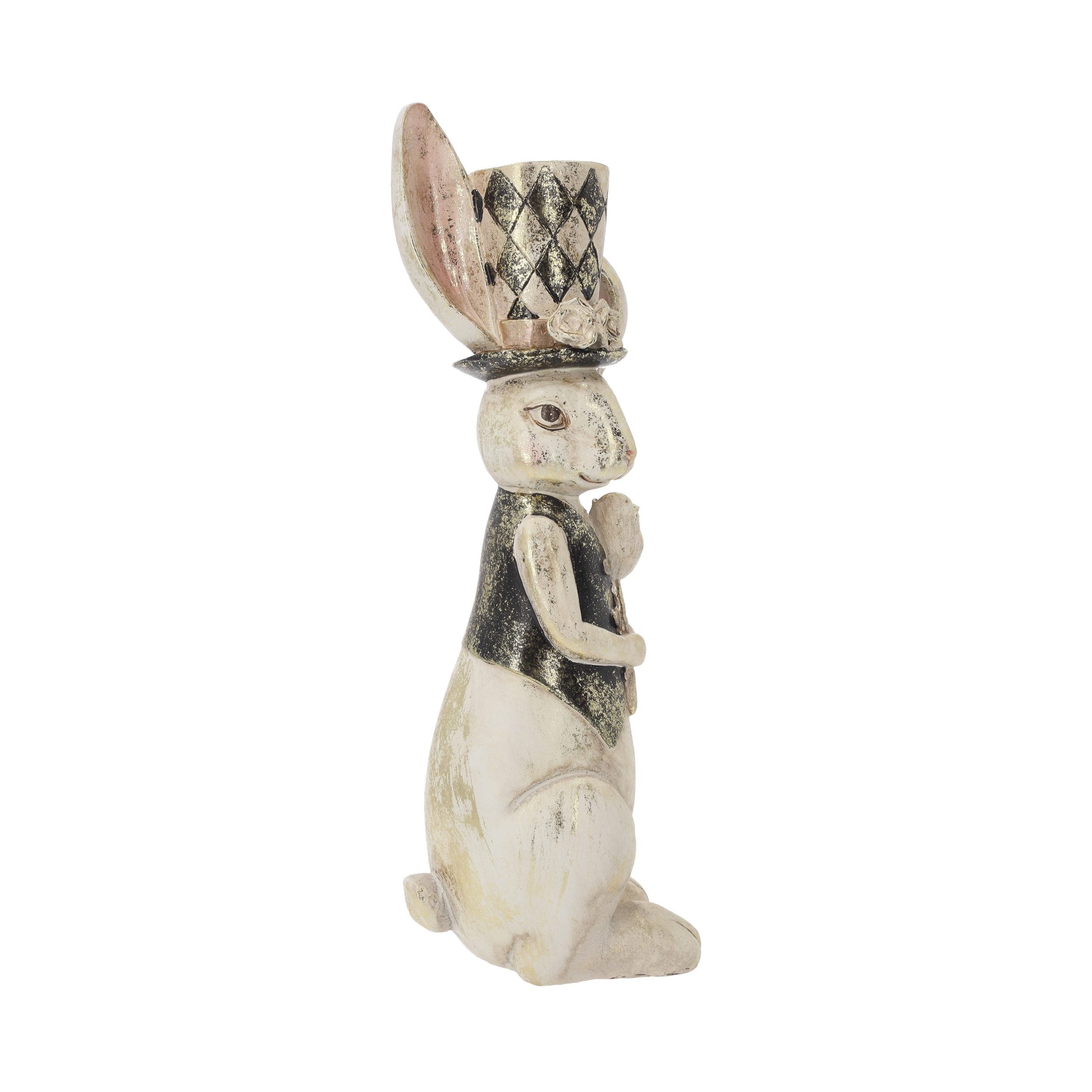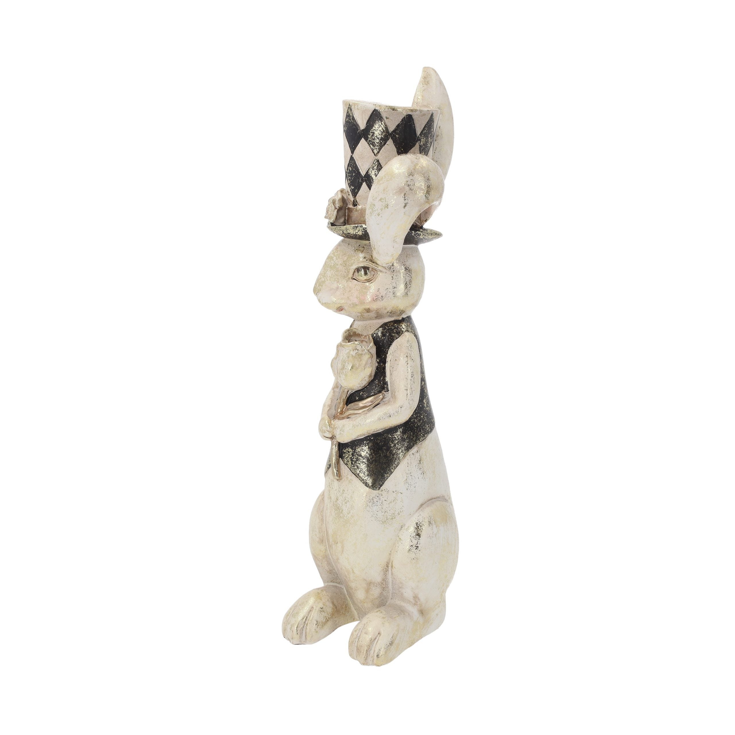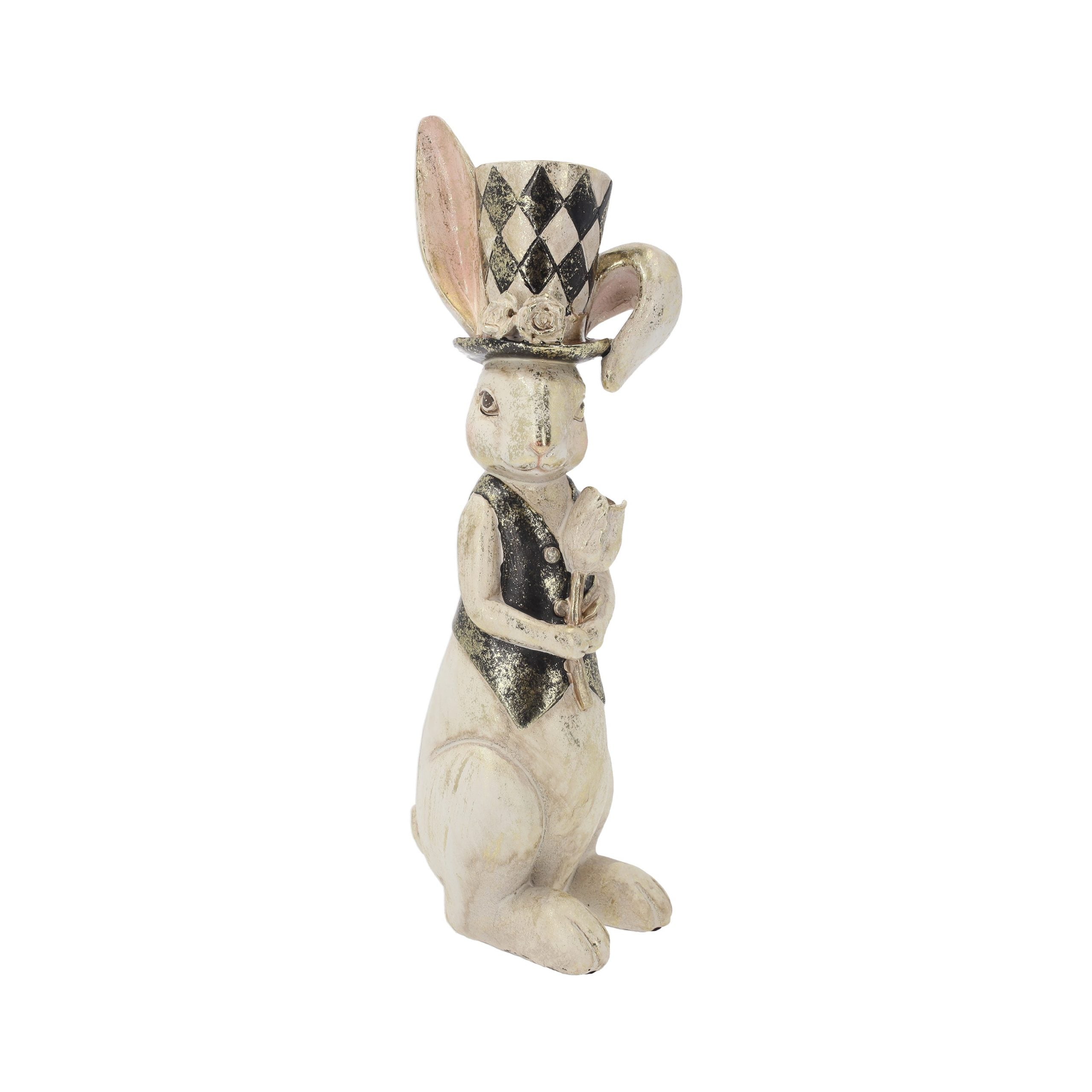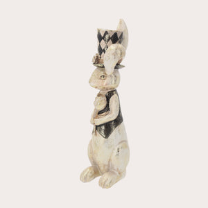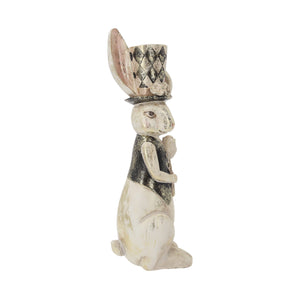 Resin Rabbit Statue with Poppy and Hat