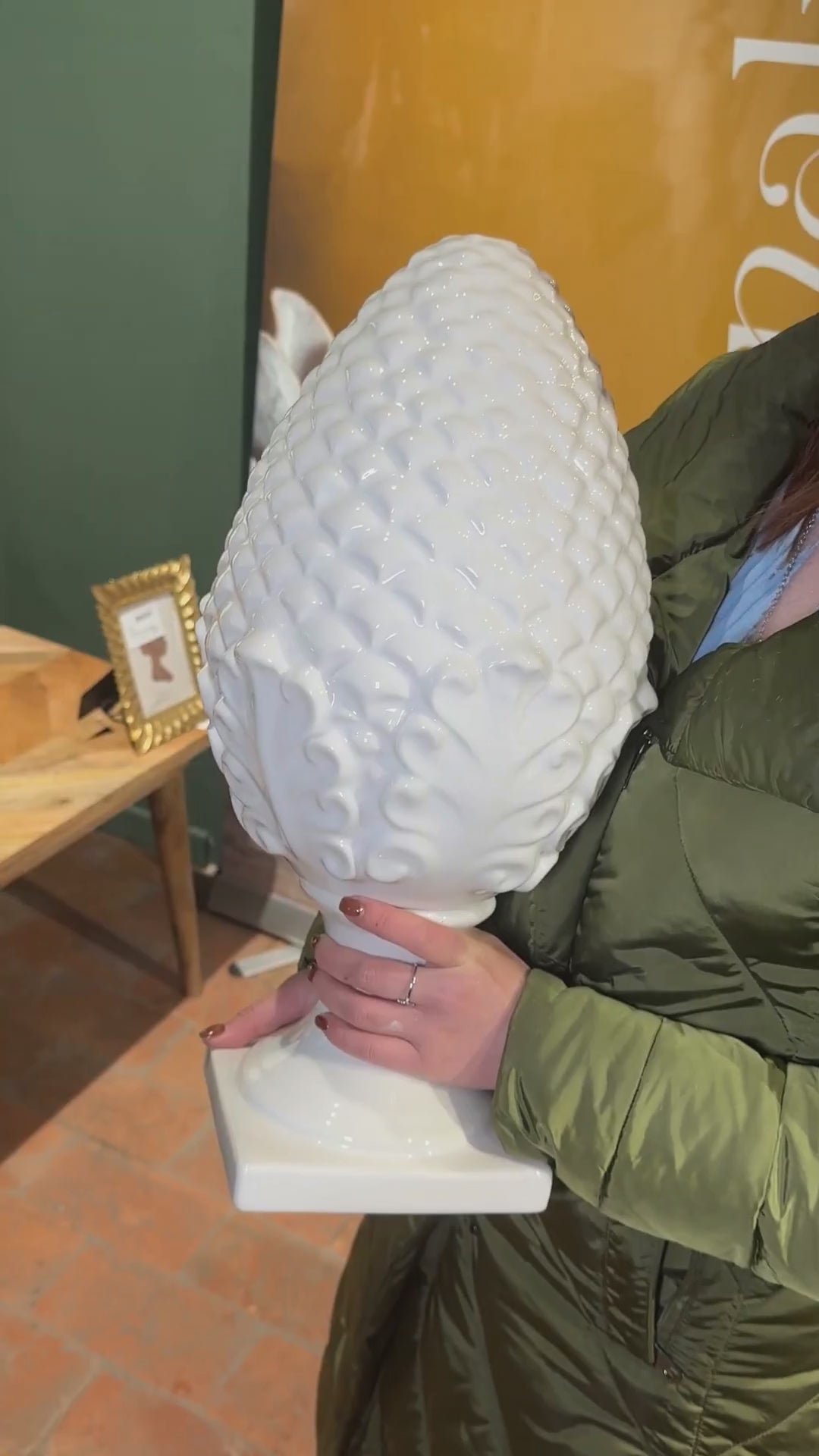Decorative White Ceramic Pine Cone – Handcrafted in Italy, 60 cm high