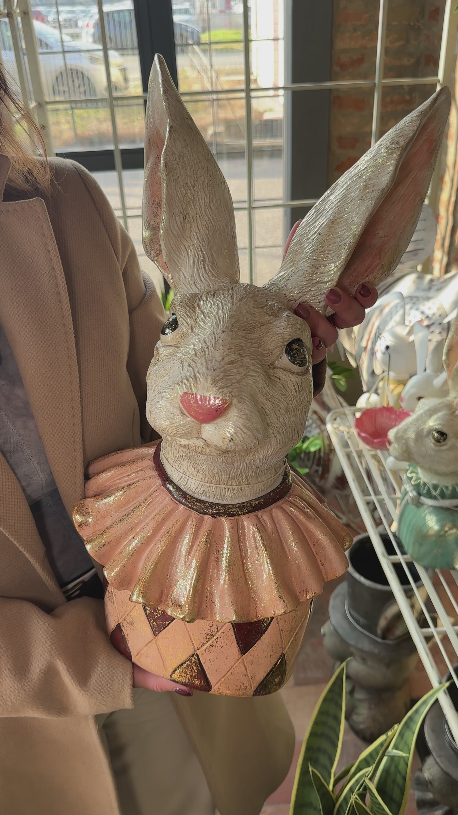 Decorative Pink and White Resin Rabbit for Interiors