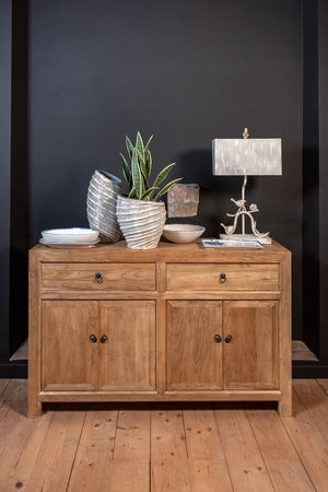 Natural Wood Sideboard in Vintage Style with 2 Doors and 4 Drawers – 150x40x90H