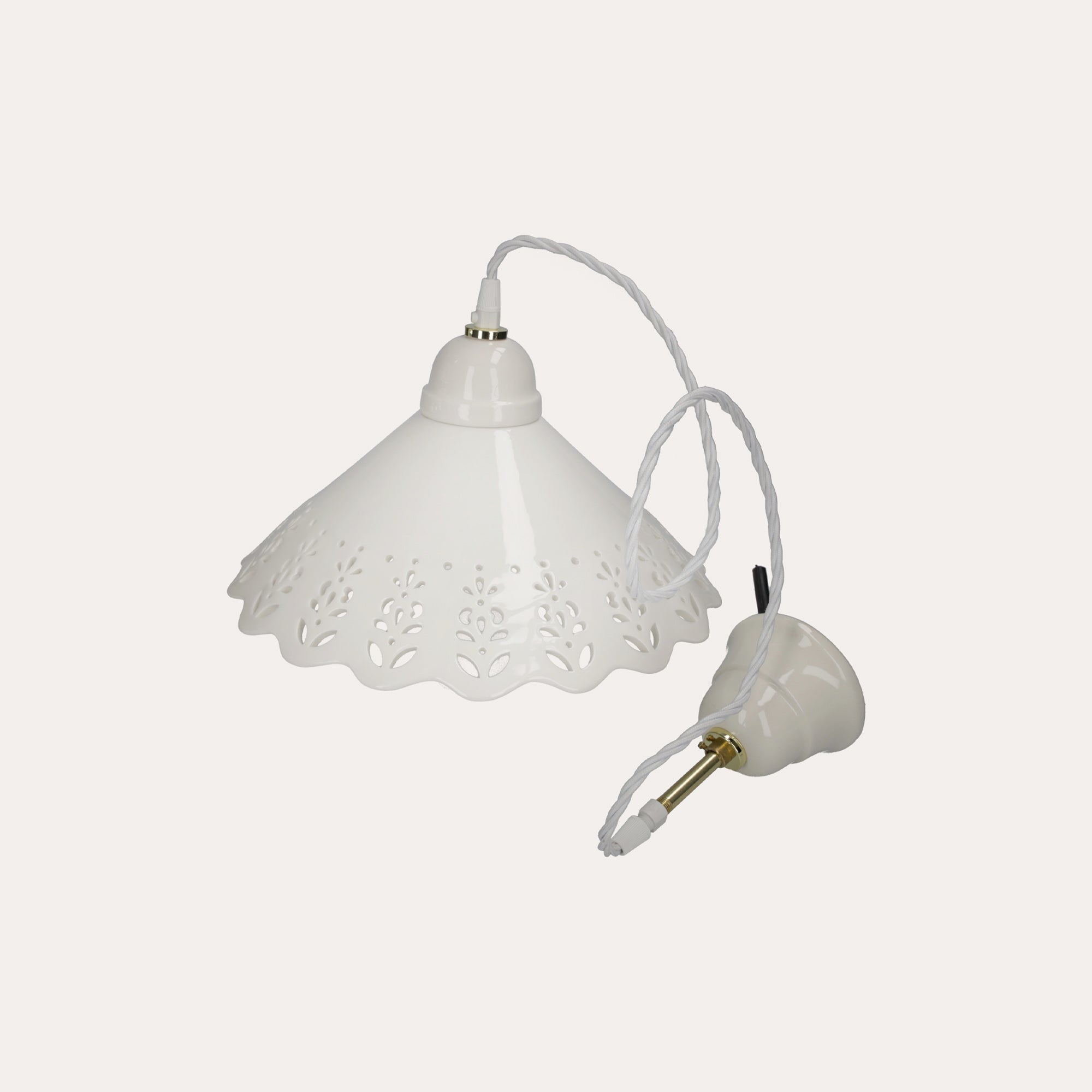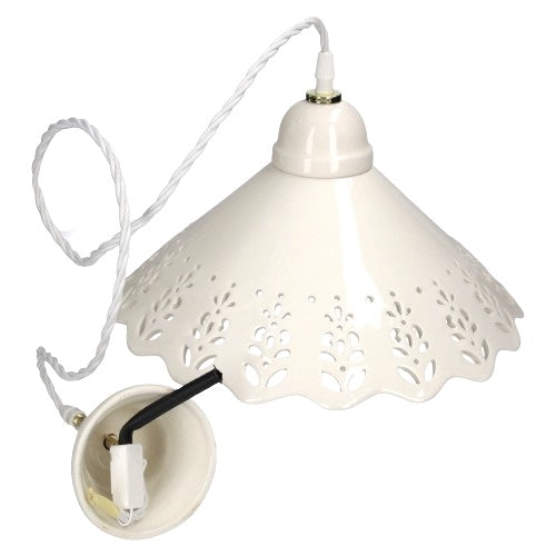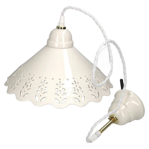 Rustic White Ceramic Chandelier with Braid - 30 cm