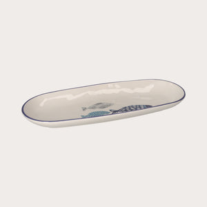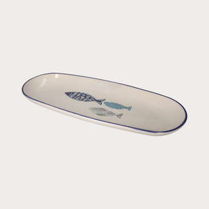 Ceramic Oval Plate with Blue and White Fish – Decorative or Serving Oval Plate