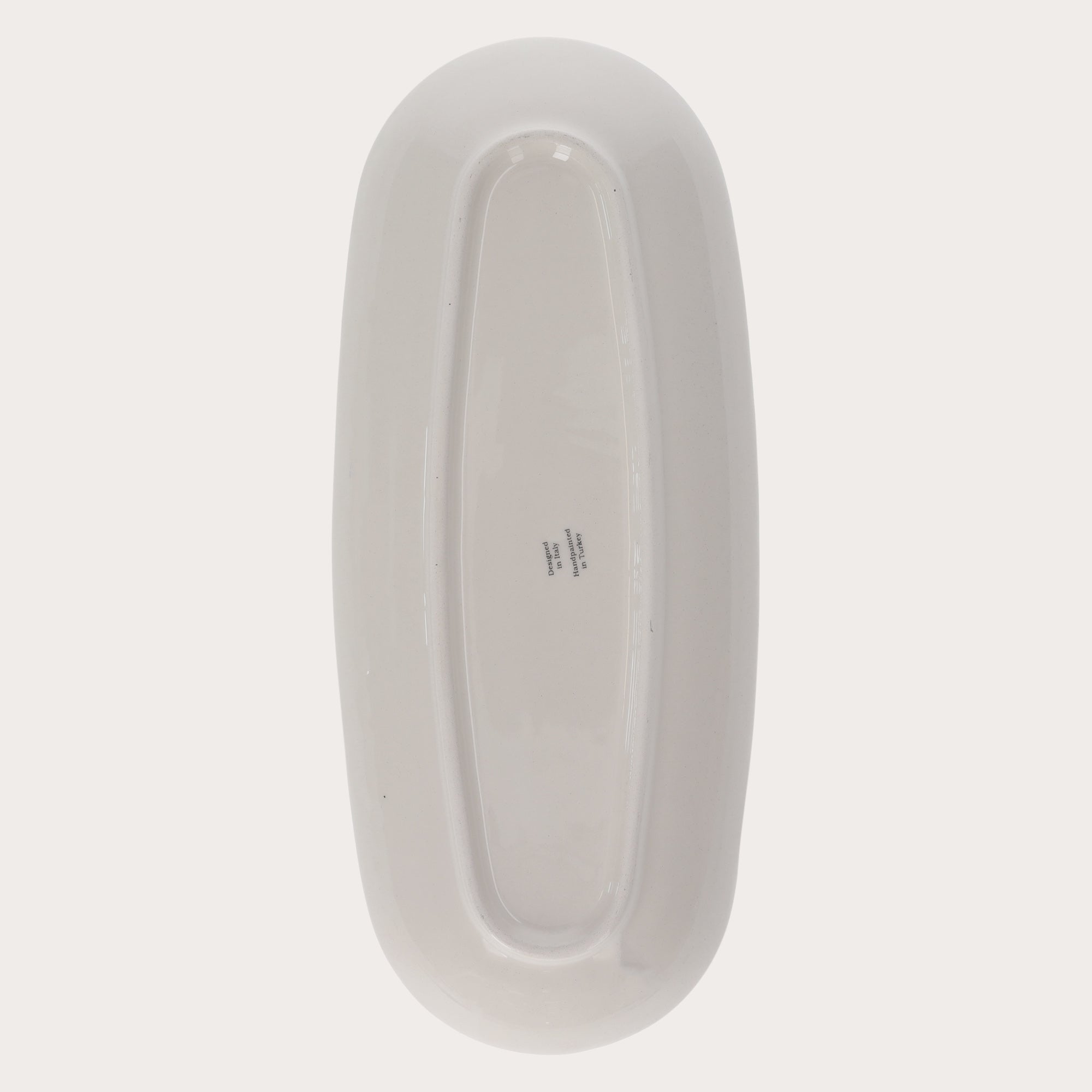 Serve appetizers and first courses with our oval porcelain plate decorated with blue and white fish on a glossy white background. This elegant, elongated plate, with its ocean-blue rim, is also ideal as a unique ornament for your home. Crafted from high-quality, scratch-resistant ceramic, it's an essential addition to your summer table and adds a touch of freshness to your interior.