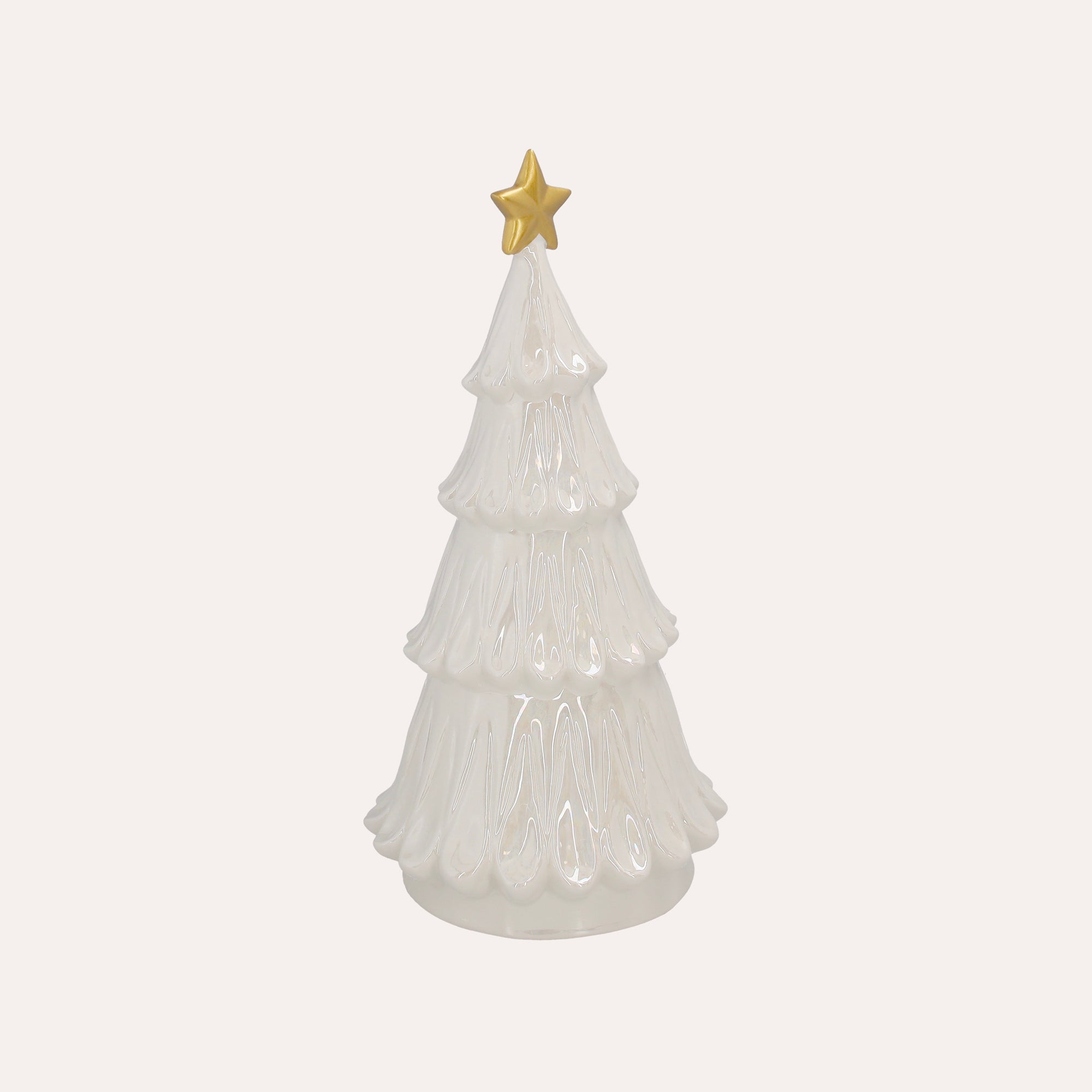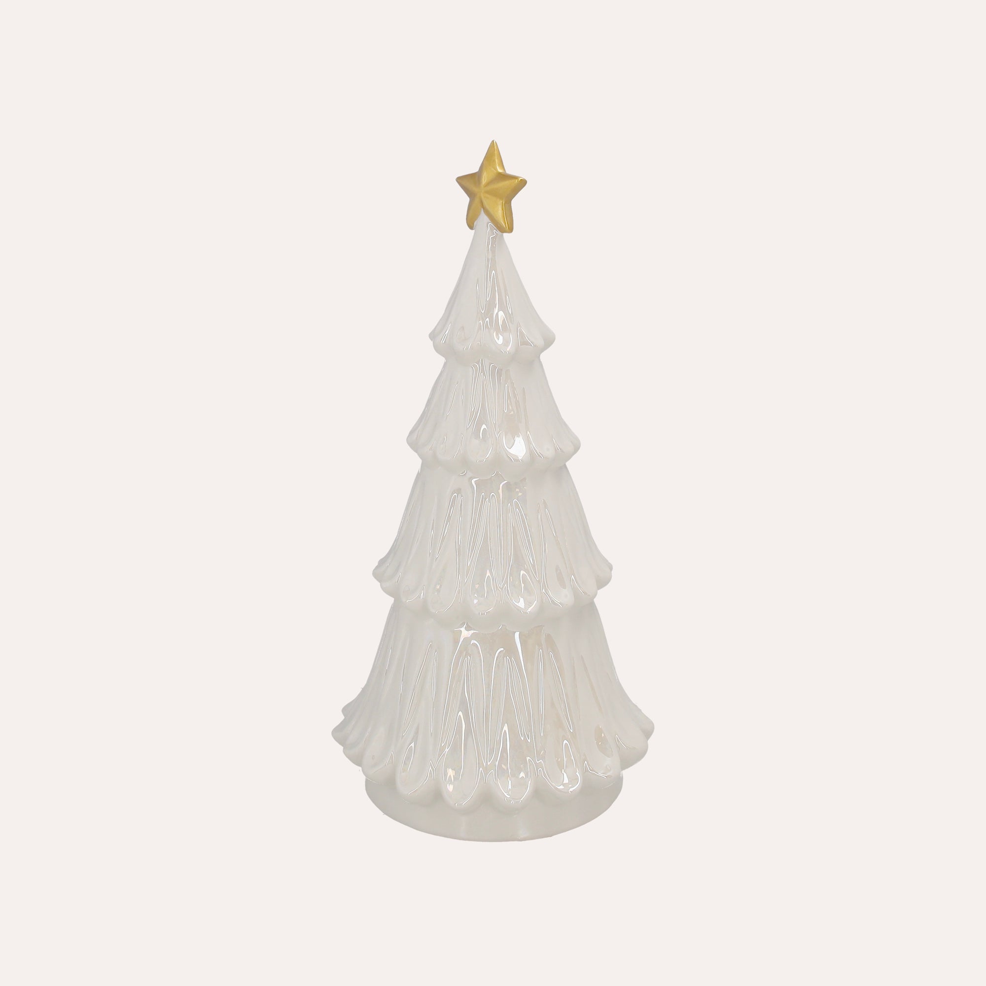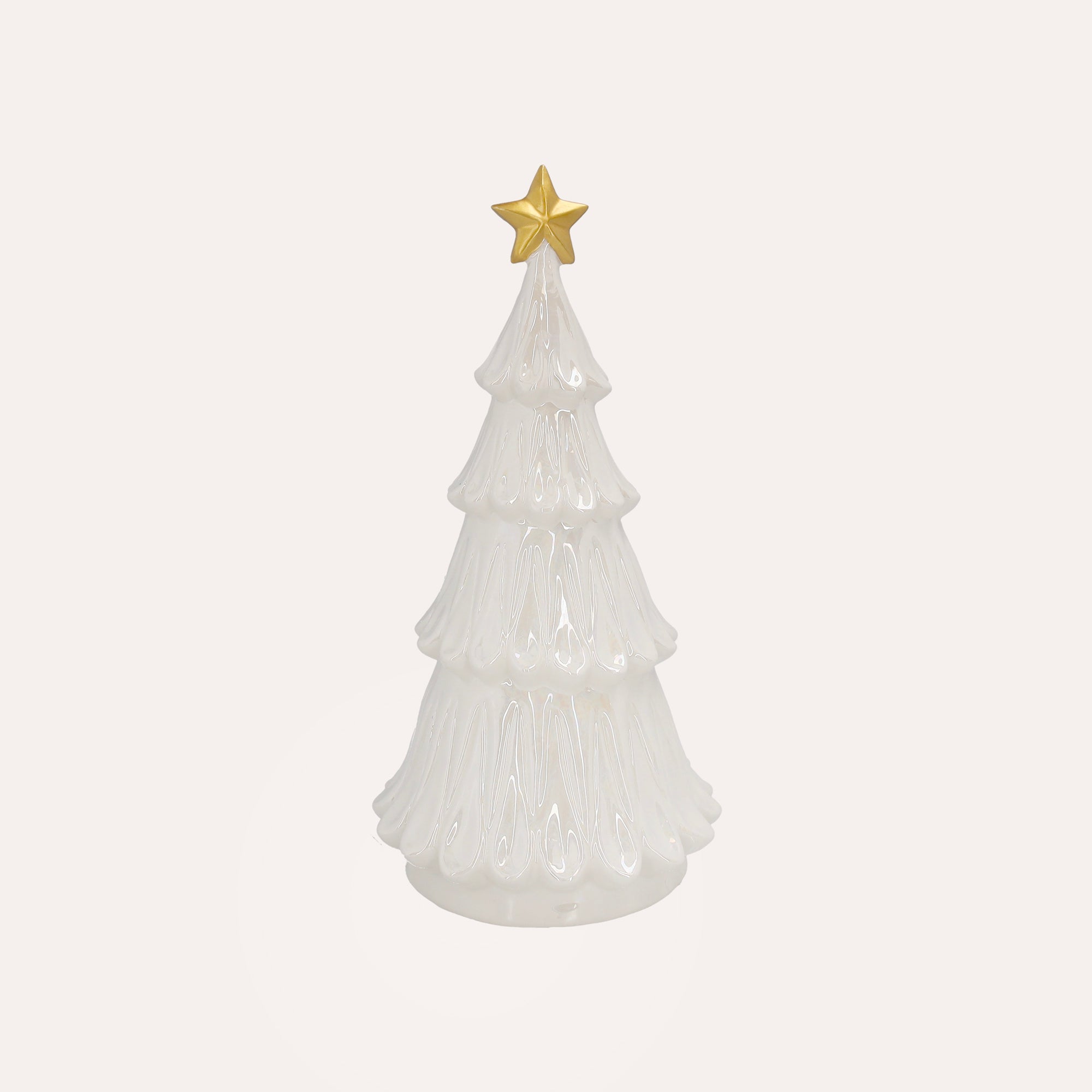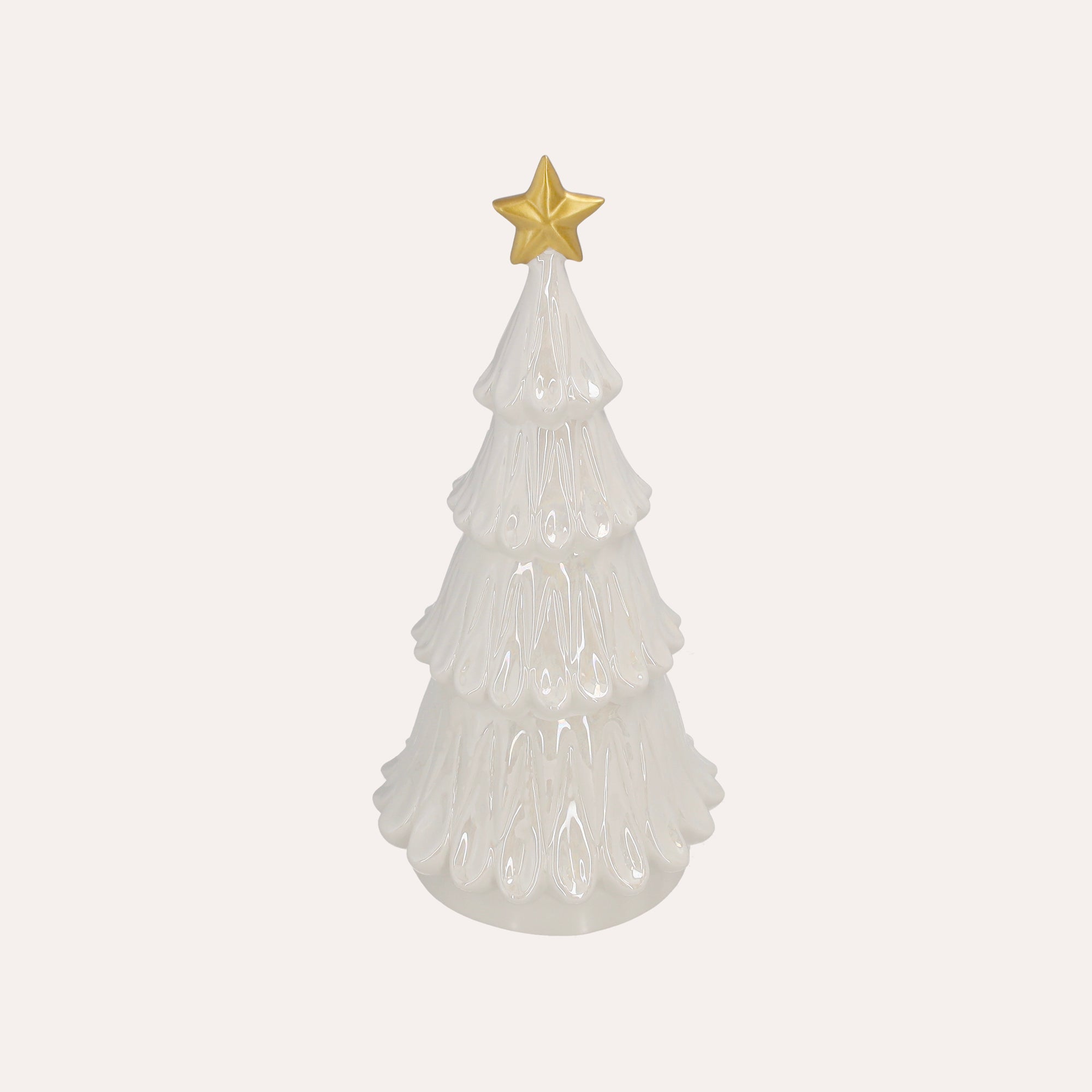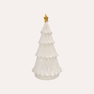 Albero natalizio in ceramica bianca con stella dorata – H 31 cm