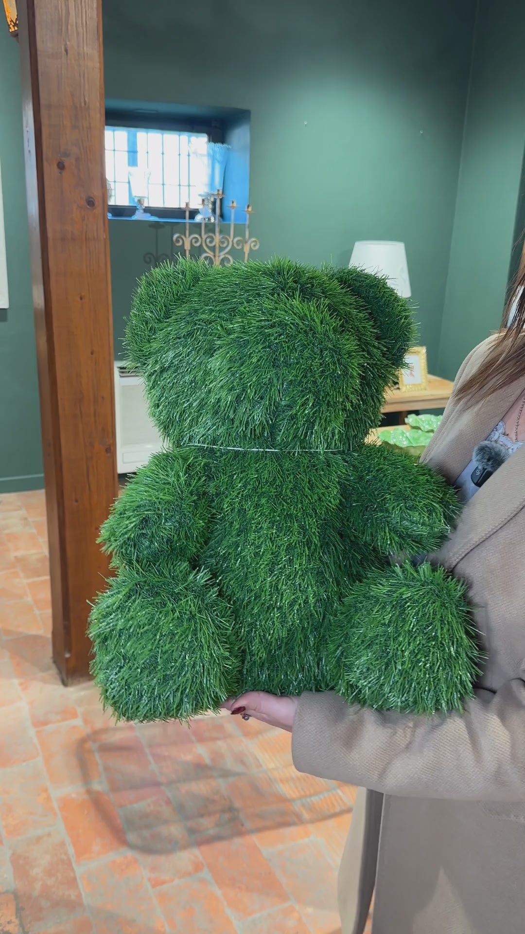 Orso Verde Medio in Erba Sintetica H.50x35x30 cm – Decorazione da Giardino