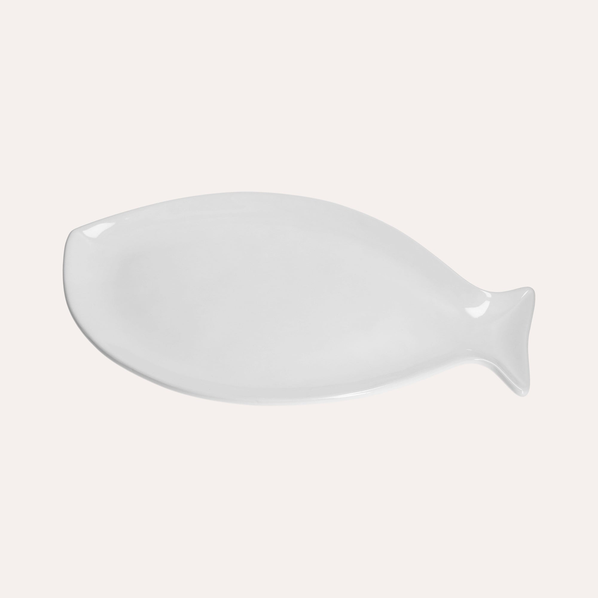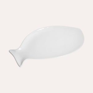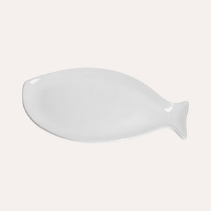 Piatto Piano a Forma di Pesce in Ceramica Bianca Grande