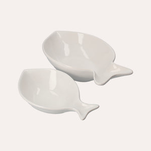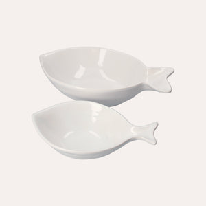 Set di 2 Piatti Fondi in Ceramica Bianca a Forma di Pesce Balena