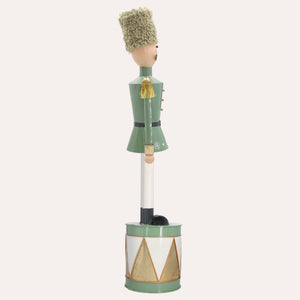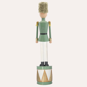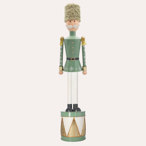 Decorativo soldatino in latta, caratterizzato da un simpatico baffo e finitura verdina. Perfetto come elemento natalizio per mensole, scaffali o angoli della casa.