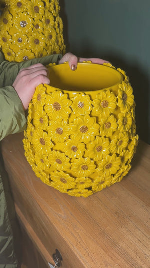 Vaso Decorativo con Margherite Gialle in Ceramica Altezza cm 28
