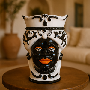 Vaso Testa di Moro Uomo in Ceramica Nera – Vaso Decorativo Artigianale